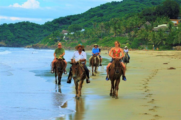 Experience an unforgettable sunset horseback ride led by our skilled cowboys. Tour the village of Higuera Blanca, pass through the jungle, and reach the beach to enjoy 20 minutes of sunset views. Unlimited refreshing drinks (beer, soda, and water) and salty snacks are provided at the beach for a magical experience. Restrictions